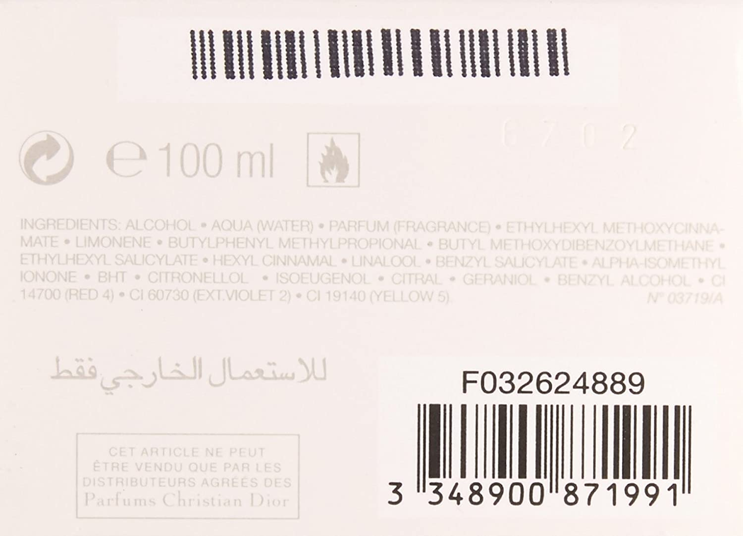 Jadore By Christian Dior For Women. Eau De Parfum Spray 3.4 Ounces