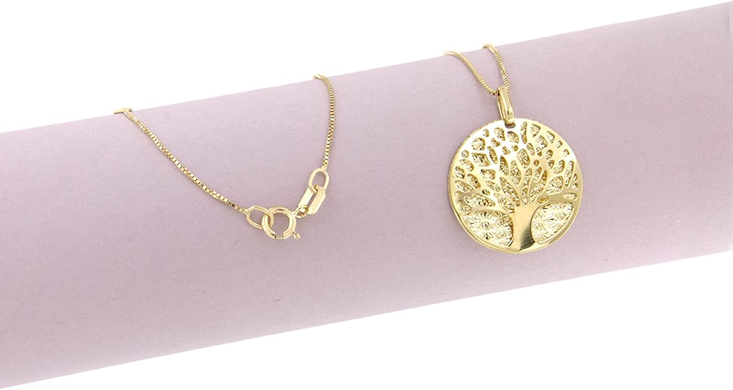 Lucchetta - 14ct Yellow Gold Tree of Life Pendant Necklace, 40.64 + 5.08 cm, High Quality Italian Solid Gold Necklace, For Women Teen Girls, Fine Jewelry, XD8431-VE45, Metal